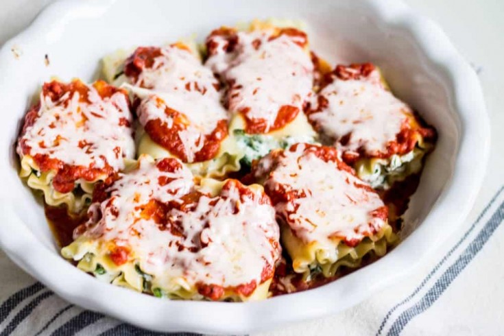 A vegetarian, freezer-friendly, delicious meal of lasagna rolls filled with spinach and ricotta.