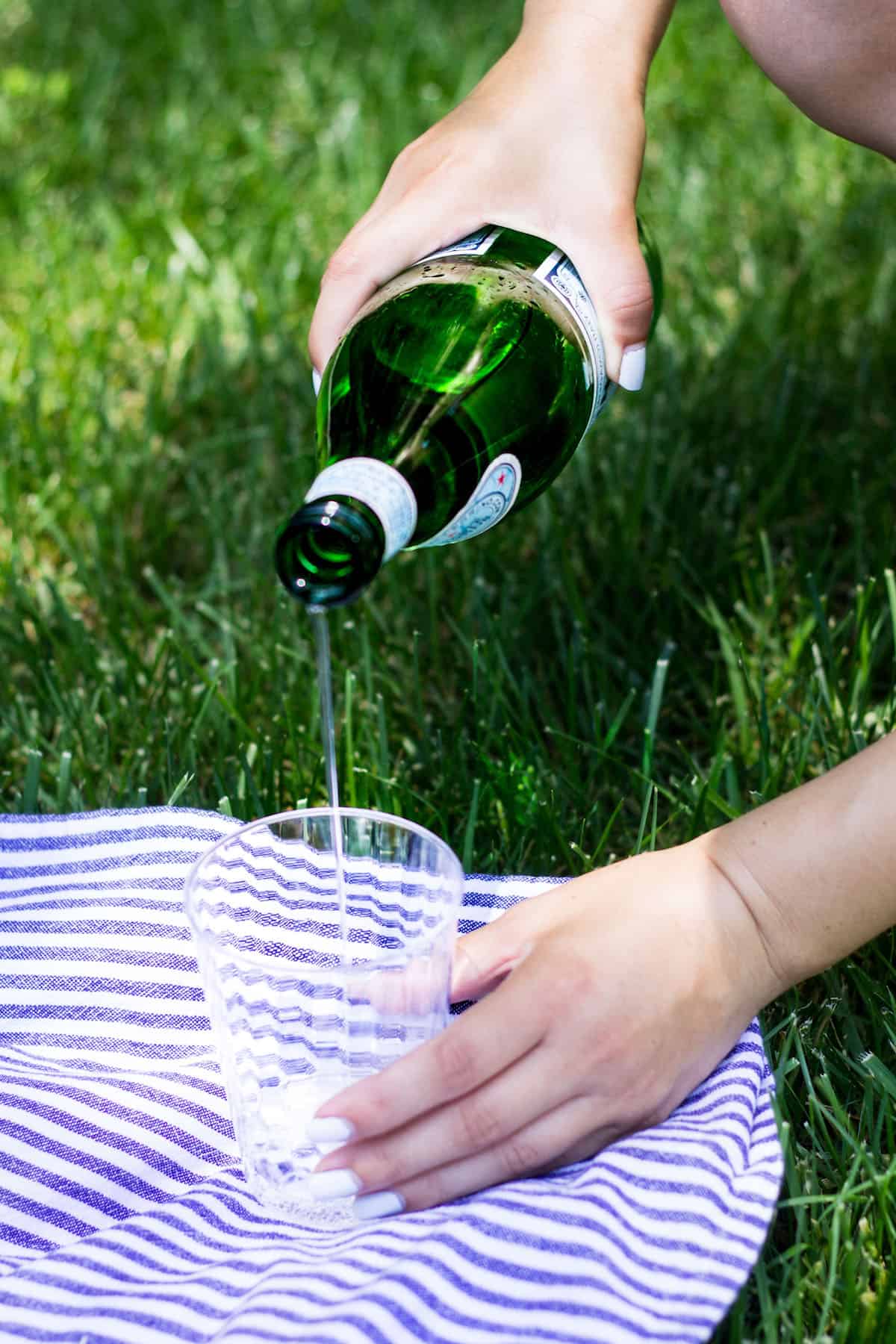 To make the most out of your picnic, I suggest packing some fresh summer fruit too, like berries or peaches, which you can also toss into your glass of sparkling water.